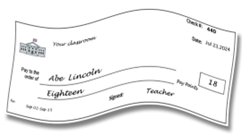At the end of a pay period, a check is printed for each student and a direct deposit is made to their bank account and a progress report is printed showing their current bank balance and their results for the assignments given.