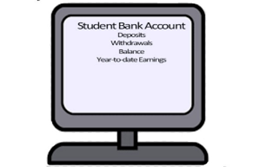 Each student is given an ID and password to gain access to their bank account online. Their balance at the end of each pay period appears on their progress report as well as online.